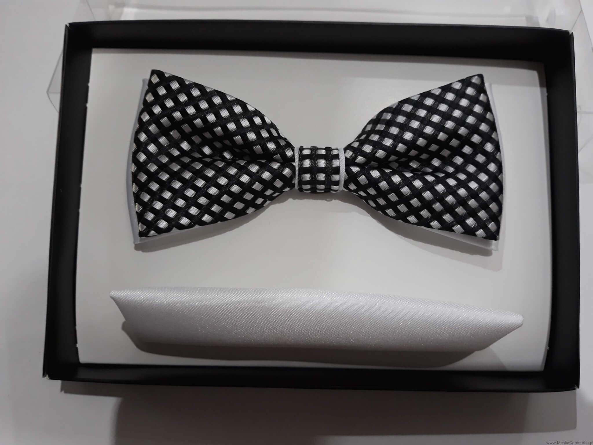 Mucha nie jest ręcznie wiązana lecz zawiązana na stałe. Pasek od muchy posiada regulację zapięcia. Komplet ten zawiera muchę wraz z poszetką widoczną na zdjęciu.