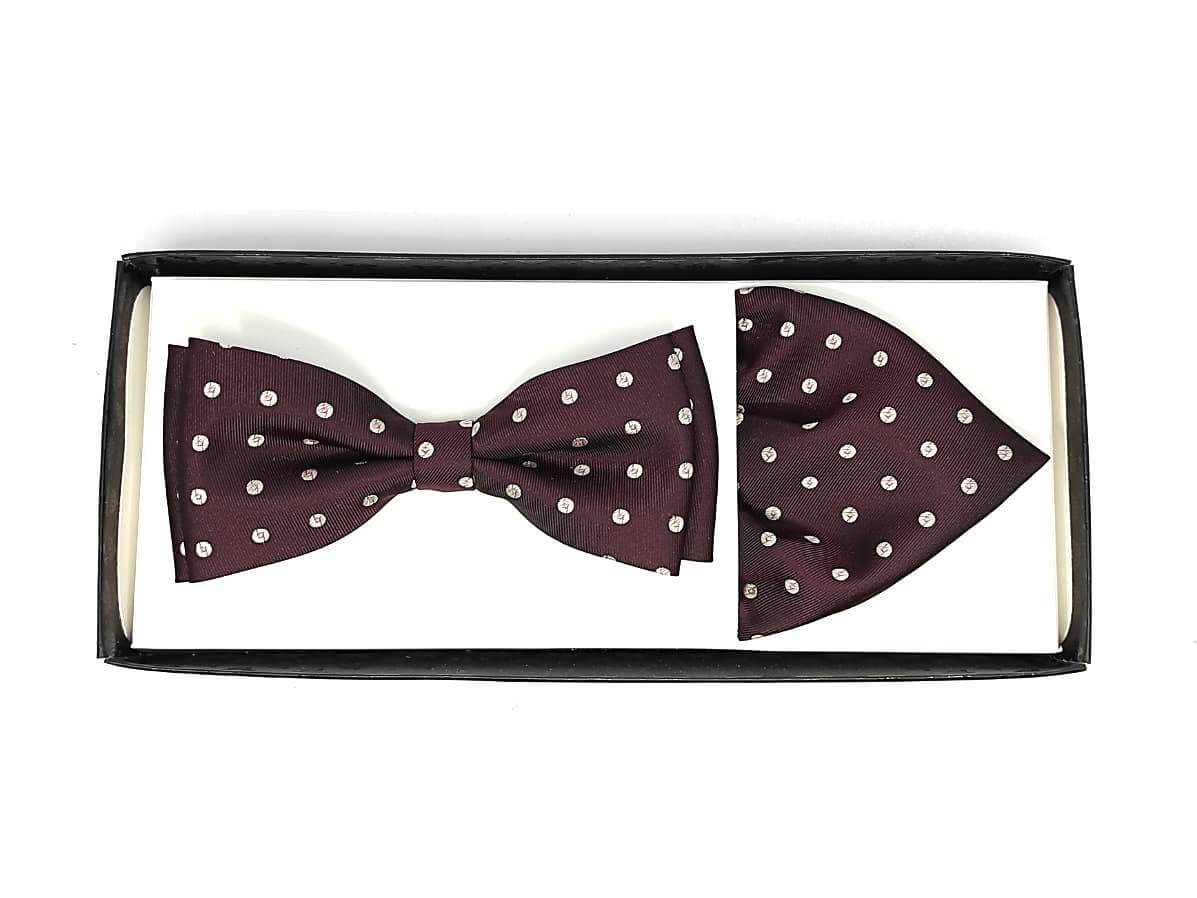 Zestaw mucha plus poszetka burgund. Mucha to dodatek, który stanowi bazę garderoby eleganckiego mężczyzny. Zgodnie z płynącym obecnie trendy modowym nie ma obowiązku, który mówiłby o łączeniu jej z frakiem czy kołnierzykiem łamanym przy koszuli. Moda nowoczesna zestawia muchę nie tylko ze stylem eleganckim, ale również z luźnym i sportowym strojem. Niebanalna mucha orzeźwi tradycyjny garnitur, jak również wyśmienicie będzie się komponować ze sportową marynarką czy luźnym kardiganem.