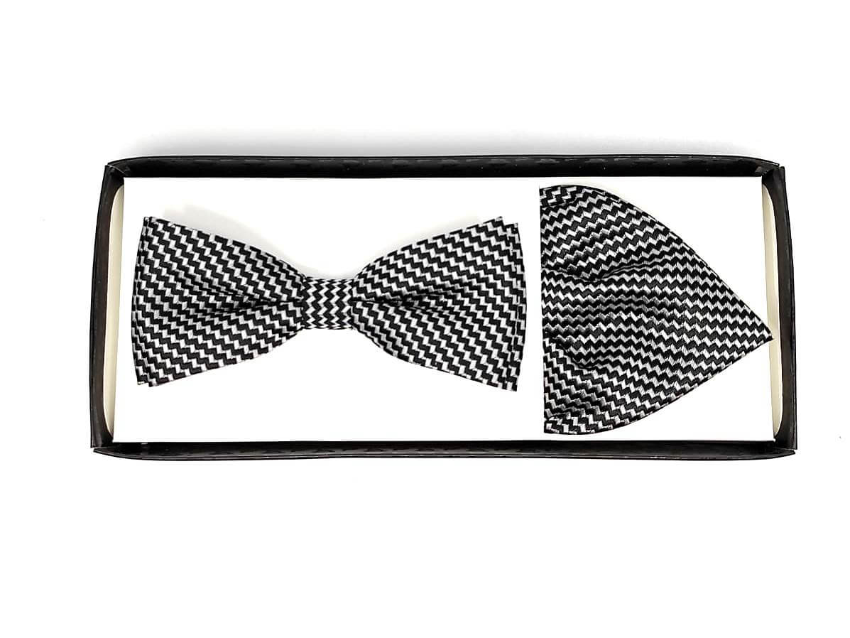 Mucha nie jest ręcznie wiązana lecz zawiązana na stałe. Pasek od muchy posiada regulację zapięcia. Komplet ten zawiera muchę wraz z poszetką widoczną na zdjęciu.