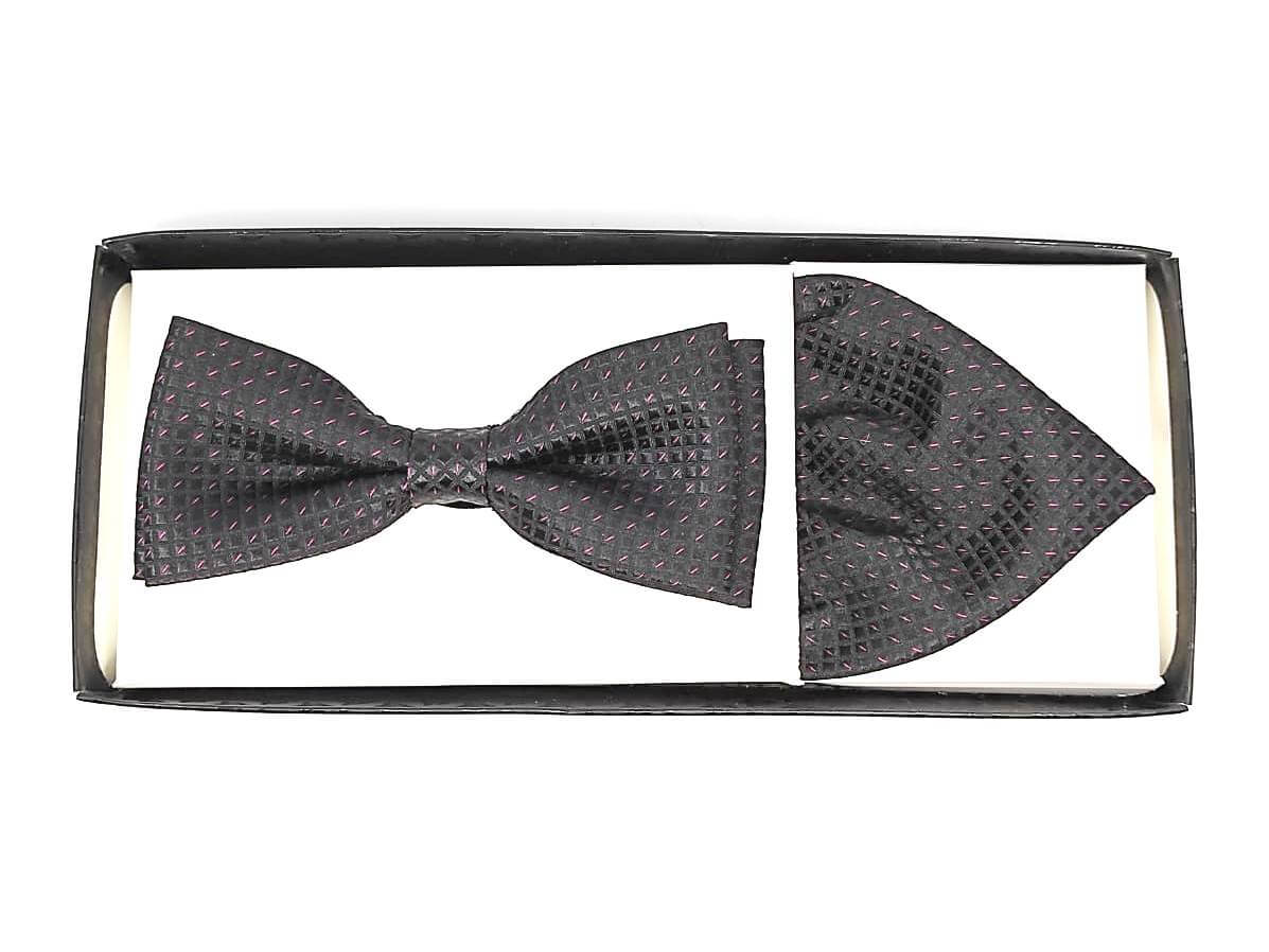 Zestaw mucha(slim) plus poszetka czarno popielata