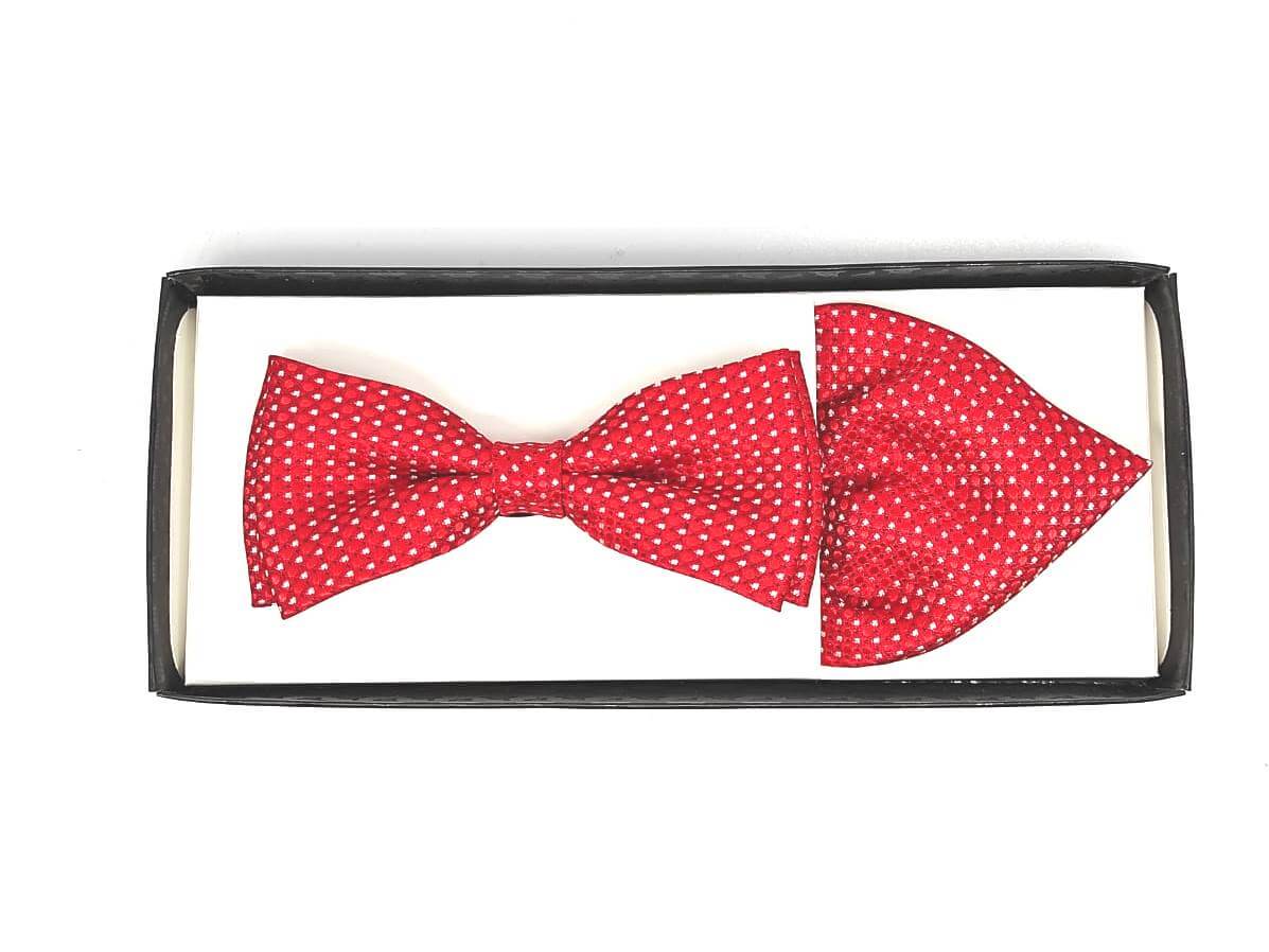 Mucha nie jest ręcznie wiązana lecz zawiązana na stałe. Pasek od muchy posiada regulację zapięcia. Komplet ten zawiera muchę wraz z poszetką widoczną na zdjęciu.