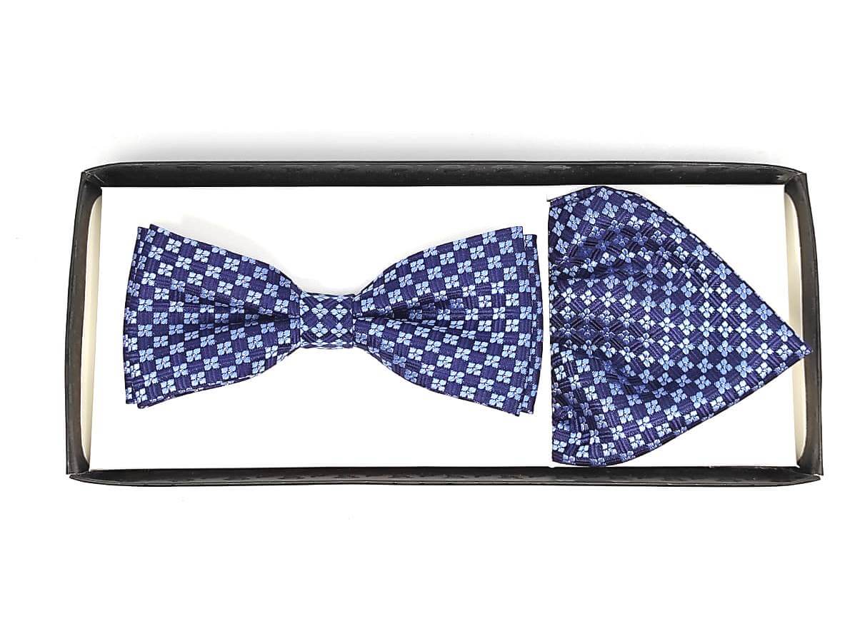 Mucha nie jest ręcznie wiązana lecz zawiązana na stałe. Pasek od muchy posiada regulację zapięcia. Komplet ten zawiera muchę wraz z poszetką widoczną na zdjęciu.