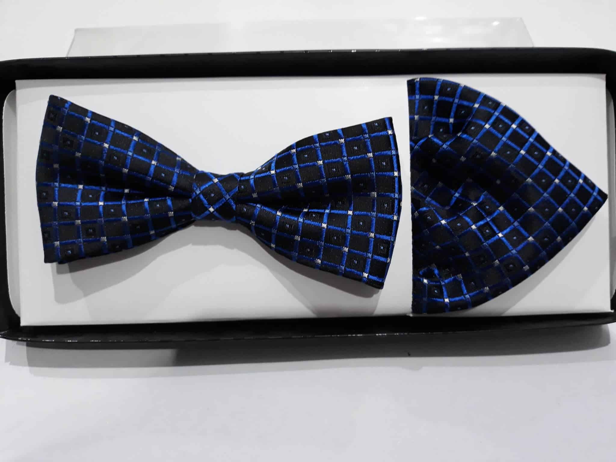 Zestaw mucha plus poszetka granat krata szafir