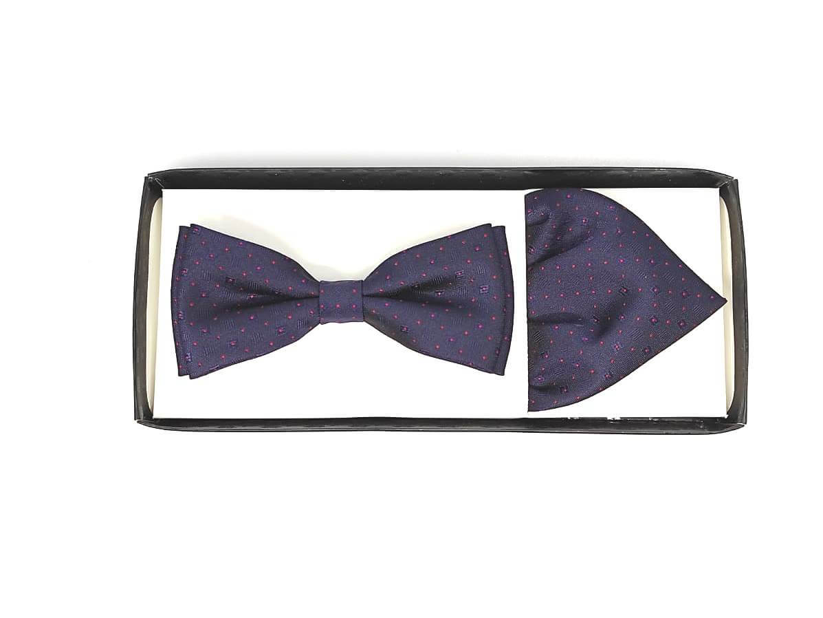 Zestaw mucha plus poszetka granat kropka czerwona