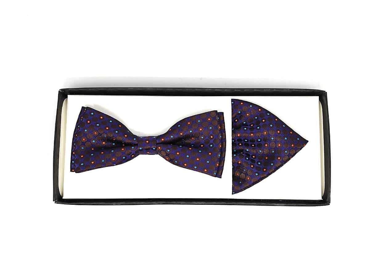 Zestaw mucha plus poszetka granat kropki pomarańcz