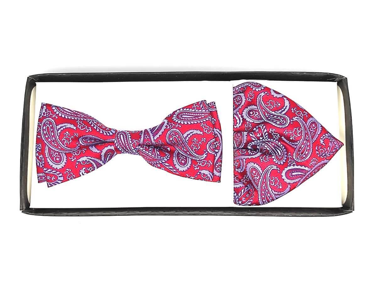 Zestaw mucha plus poszetka niebiesko czerwona. Mucha to dodatek, który stanowi bazę garderoby eleganckiego mężczyzny. Zgodnie z płynącym obecnie trendy modowym nie ma obowiązku, który mówiłby o łączeniu jej z frakiem czy kołnierzykiem łamanym przy koszuli. Moda nowoczesna zestawia muchę nie tylko ze stylem eleganckim, ale również z luźnym i sportowym strojem. Niebanalna mucha orzeźwi tradycyjny garnitur, jak również wyśmienicie będzie się komponować ze sportową marynarką czy luźnym kardiganem.