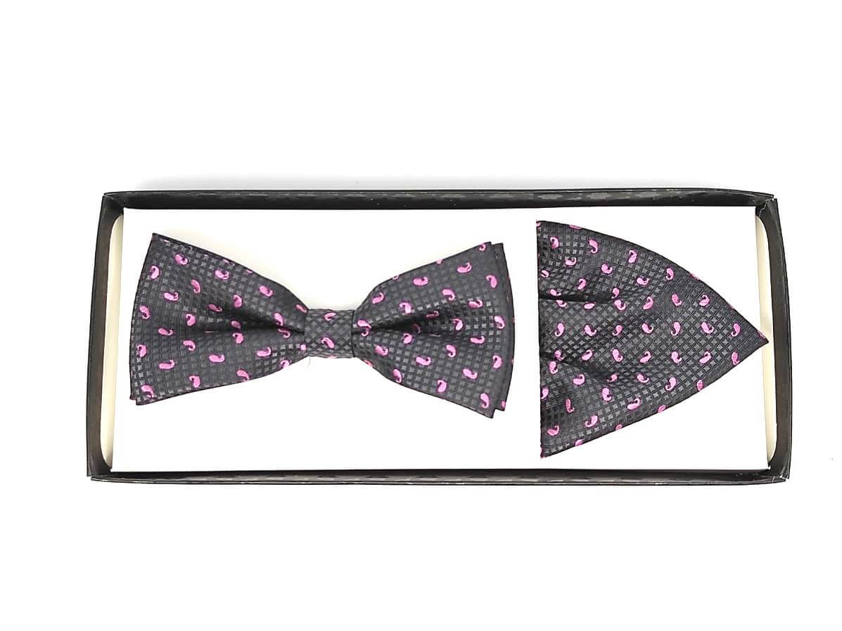 Mucha nie jest ręcznie wiązana lecz zawiązana na stałe. Pasek od muchy posiada regulację zapięcia. Komplet ten zawiera muchę wraz z poszetką widoczną na zdjęciu.