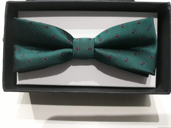 Zestaw mucha plus poszetka zieleń butelkowa i bordo kropki
