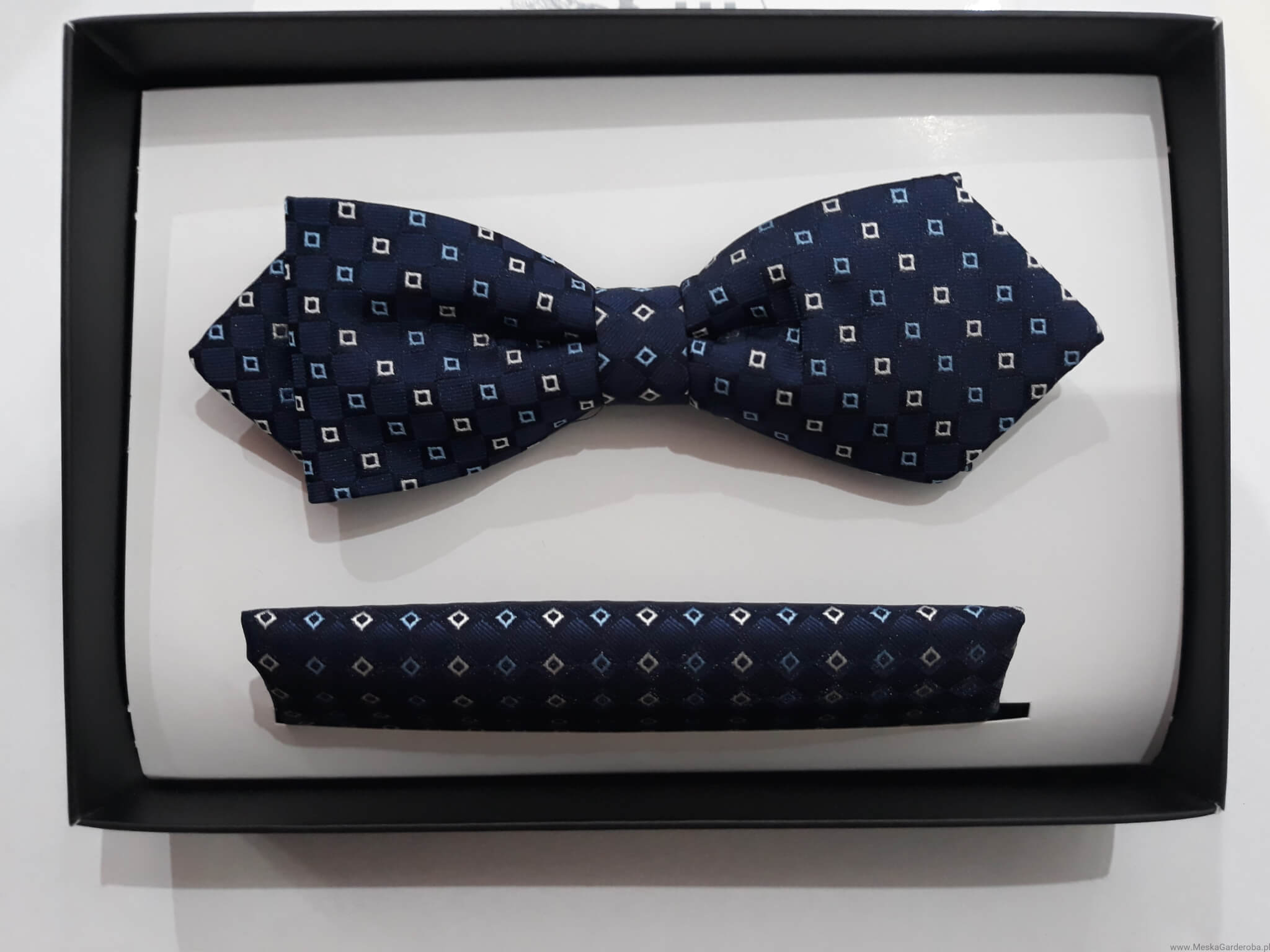 Zestaw mucha(slim) plus poszetka granat kwadraciki
