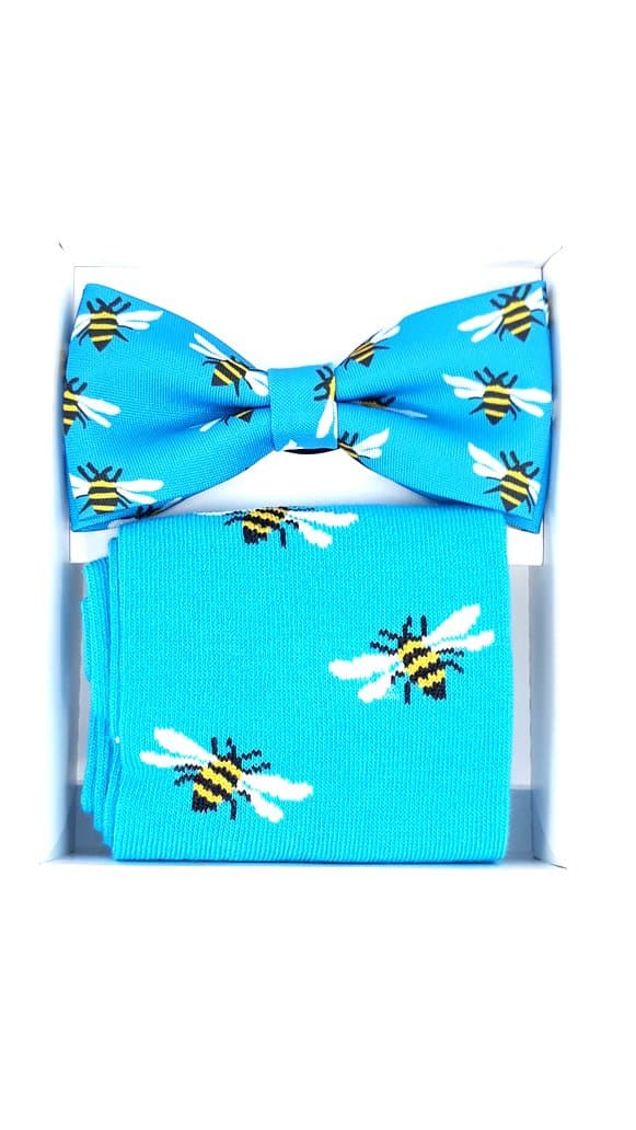Unikatowy zestaw mucha skarpety ze wzorem w pszczoły.